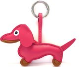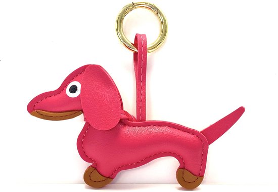 Porte-clés ou accroche-sac avec teckel rose et porte-clés doré. Le teckel mesure environ 14 cm.