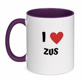 Hacebo® - Tasse à café violette « J'aime ma sœur » - Sœur - la plus adorable des sœurs - Mug - Tasse à café - Anniversaire - Cadeau pour sœur - Articles pour sœur - Cadeau - Mug à café - Contenance : 350 ml