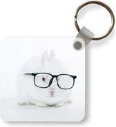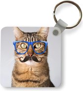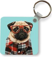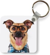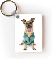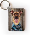 Porte-clés Animaux hipster - Un chien hipster contre une clôture Porte-clés en plastique - Porte-clés rectangulaire avec photo