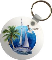 Porte-clés - Bateau - Vogel - Mer - Aquarelle - Plastique - Rond - Cadeaux à distribuer