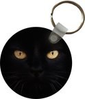 Porte-clés - Gros plan chat noir - Plastique - Rond