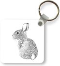 Porte-clés Illustration de lapin - Porte-clés lapin illustré réaliste en plastique - Porte-clés carré avec photo