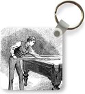 Porte-clés - Un dessin historique d'un homme jouant au billard - Plastique