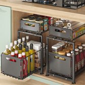 L'organisateur d'évier mesure 11 cm de large, 34 cm de profondeur et 38 cm de hauteur. L'organisateur de l'armoire de l'évier comporte des trous pré-percés afin que vous puissiez sécuriser encore plus le rack. La charge maximale du rack est de 2 kg. Ce Metaltex de cuisine extensible Metaltex a 2 étages avec un écart de 30 cm et est fait de métal robuste et bénéficie d'une garantie du fabricant de 5 ans.