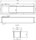La taille externe est de 720 x 195 x 124 mm (L x H x P), mais notez que le trou de montage doit être de 665 x 140 x 125 mm (L x H x P).