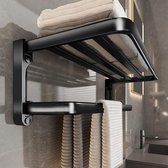 Grande capacité de 60 cm : le porte-serviettes nouveauté 2023 sans perçage dans la version mise à niveau noire peut stocker des serviettes et des serviettes de bain de différentes tailles. Les serviettes sèches peuvent être pliées, tandis que les serviettes mouillées peuvent être suspendues pour sécher pour répondre aux différents besoins de stockage. Conception pliante à double couche avec crochets : le porte-serviettes de salle de bain adopte une conception pliante à double couche, qui peut être pliée lorsqu'elle n'est pas utilisée pour économiser de l'espace. La conception du crochet vous permet de ranger davantage d'accessoires de salle de bain tels que des boules de serviettes, des rasoirs et diverses brosses et améliore la facilité d'utilisation et le rapport qualité-prix. Geen de perçage, installation facile : l'installation du porte-serviettes avec étagère est facile. Pour les murs lisses, de la colle peut être utilisée pour le fixer sans perçage. Pour les murs non lisses, il est recommandé de le percer pour un meilleur effet.