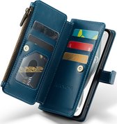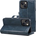 Portefeuille pour iPhone 15 avec emplacements pour cartes - Fabriqué en cuir artificiel de première qualité - Étui pour iPhone 15 avec support - Mobiq Vintage Backcover Étui portefeuille pour iPhone 15 bleu