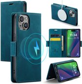 Étui portefeuille en cuir Mobiq Vintage iPhone 15 bleu