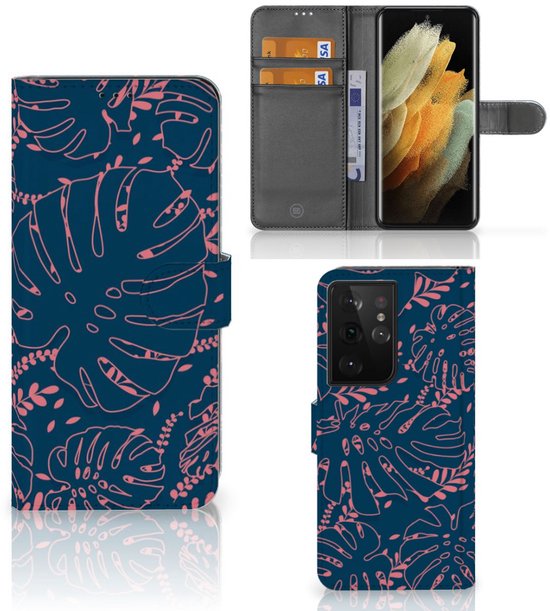 Portefeuille Samsung Galaxy S21 Ultra Coque Compatible avec Feuilles De Palmier