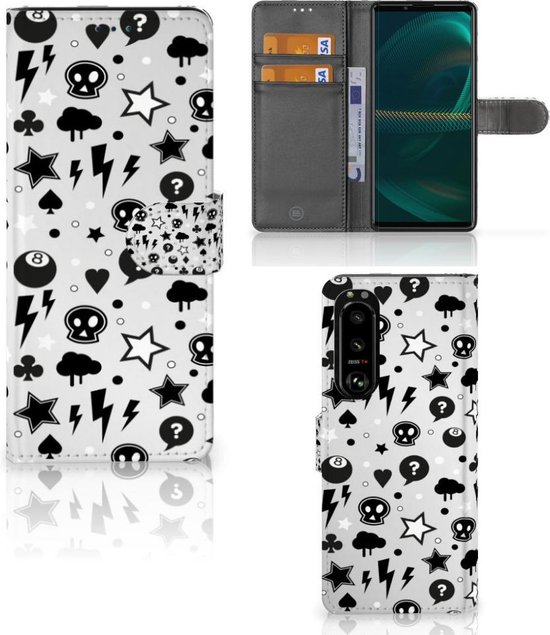 Portefeuille Sony Xperia 5III Téléphone Portable Couverture Standing pour Argent Punk