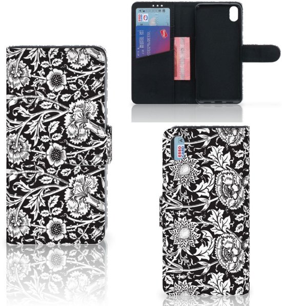 Portefeuille Xiaomi Redmi 7A Etui pour Téléphone Fleurs Noires Convient pour Xiaomi Redmi 7A