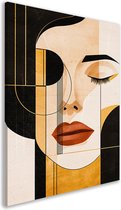 Portrait de visage - Portrait de personnes - Tableau toile art déco - Style Japandi - Décoration murale beige - Peintures toile - Toile art mural 75x100 cm