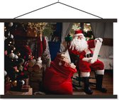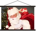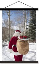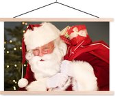 portrait du Père Noël portant un sac rouge sur son épaule poster scolaire lattes plates noir 90x60 cm - Tirage photo sur poster textielposter (décoration murale salon / chambre)