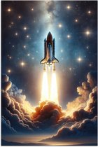 Posters - Espace - Astronaute - Fusée - Blauw - Poster photo