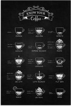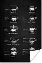 Poster 60x40 cm - Types de Café - Tableau texte - Zwart - Cappuccino - Espresso - Latte macchiato - Posters - Décoration murale cuisine - Décoration murale salon - Accessoires décoratifs - Décoration murale chambre