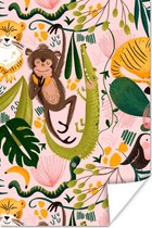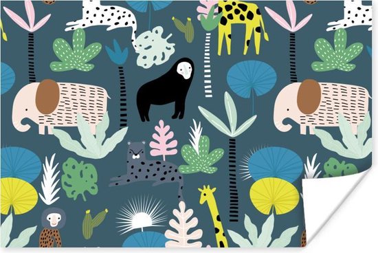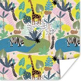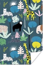 Poster Animaux - Plantes - Jungle - Blauw - 30x20 cm