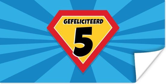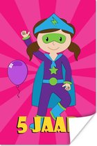 Poster Anniversaire - 5 ans - Super-héros - Blauw - 40x20 cm