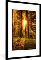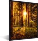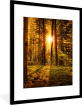 Poster - Cadre photo - Soleil - Forêt - Vert - Nature - 60x80 cm - Cadre poster - Décoration chambre - Poster forêt - Tableau cadre - Poster nature - Poster avec cadre