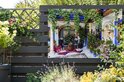 Poster carré coloré dans le jardin espagnol de Cordoue 120x80 cm - Toile de jardin / Toile d'extérieur / Peintures pour l'extérieur (décoration de jardin)