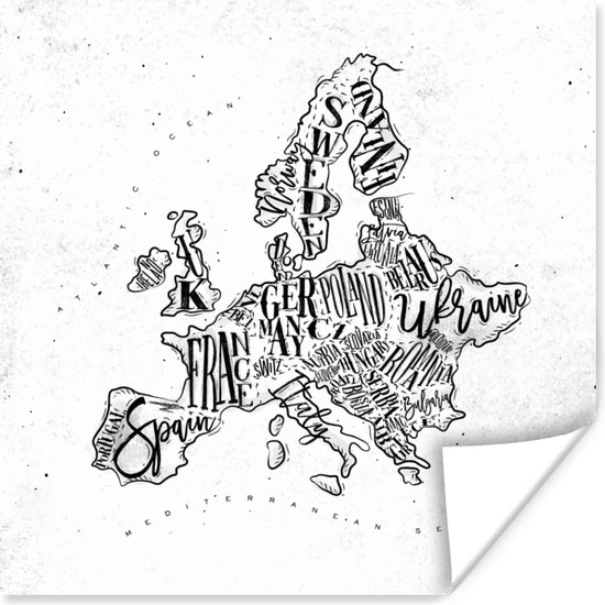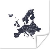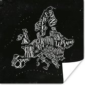 Poster Carte - Europe - Zwart - Wit - 100x100 cm XXL