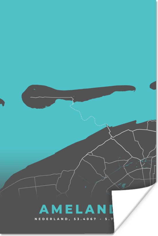 Poster Carte - Ile - Ameland - Plan de la ville - Plan d'étage - 60x90 cm