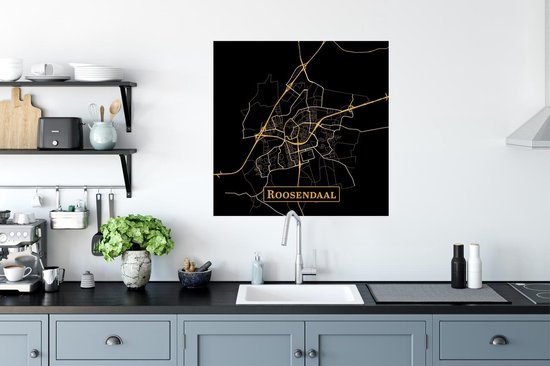 Poster Carte - Roosendaal - Or - Zwart - 75x75 cm