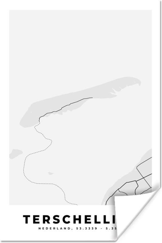 Poster Carte - Terschelling - Île - Carte - Plan de la ville - 20x30 cm
