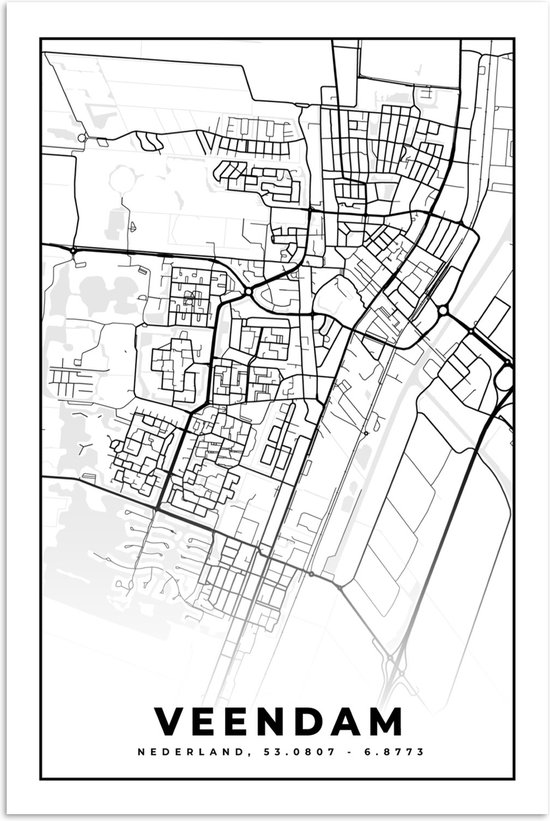 Poster Carte - Veendam - Zwart - Wit - 120x180 cm XXL
