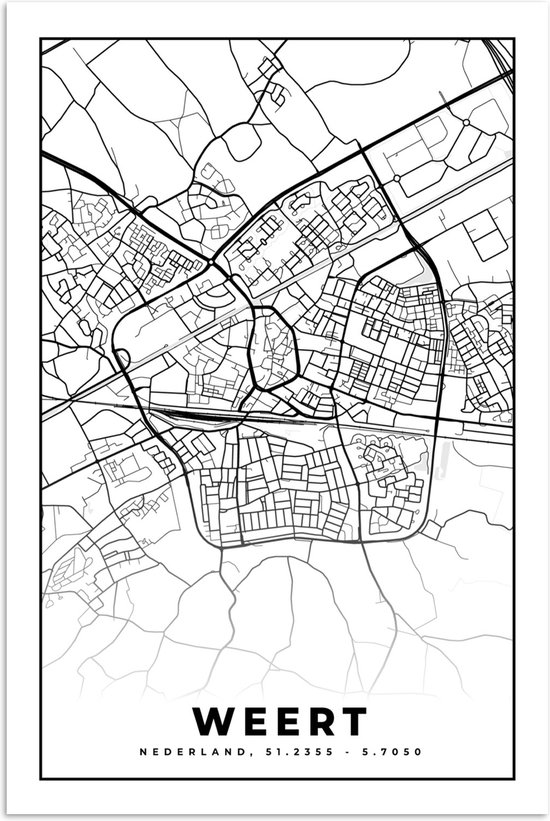 Poster Carte - Weert - Zwart - Wit - 120x180 cm XXL