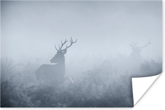 Poster Cerf dans la brume 60x40 cm - Tirage photo sur Poster (décoration murale salon / chambre) / Poster Animaux sauvages