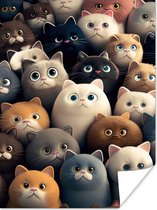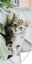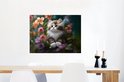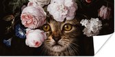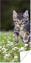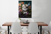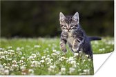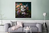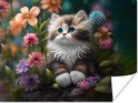 Poster Chaton - Illustration - Fleurs - Nature - Chat - 80x60 cm - Cadeau fille 7 ans