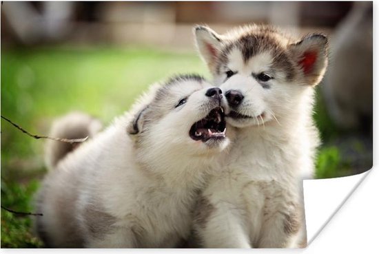 Poster Chiots jouant ensemble papier 180x120 cm - Tirage photo sur Poster (décoration murale salon / chambre) / Poster Animaux domestiques XXL / Groot format!