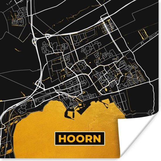 Poster City Map - Hoorn - Or - Zwart - 100x100 cm XXL - Carte