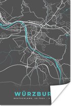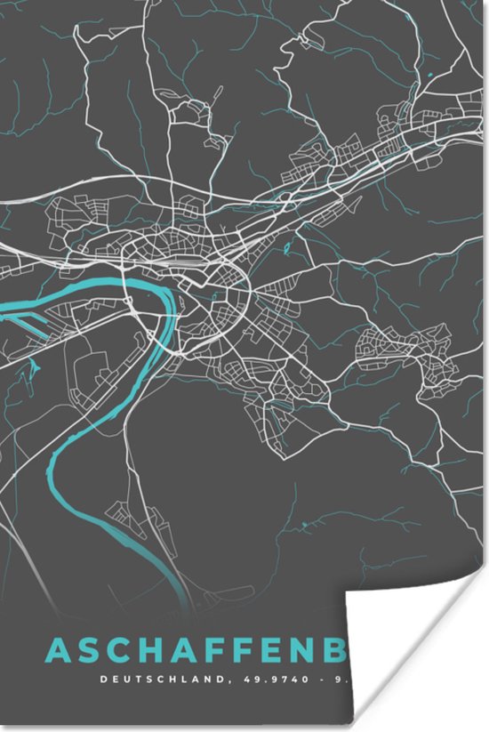 Poster City Map – Map – Aschaffenburg – Blauw – Allemagne – Map - 120x180 cm XXL