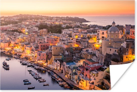 Poster Coucher de soleil sur la ville italienne de Naples 60x40 cm - Tirage photo sur Poster (décoration murale salon / chambre)