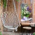 Les peintures de jardin sont en PVC. Vous obtenez ainsi une affiche de jardin aux couleurs vives. Le matériau de l'affiche est robuste et pliable, résistant aux UV et hydrofuge. Toutes nos affiches de jardin sont disponibles en plusieurs tailles, du petit (40 x 60 cm) au grand (80 x 120 cm). Un anneau a été placé dans chaque coin du tissu, afin que vous puissiez facilement accrocher le tissu. Grâce au revêtement spécial, nos affiches de jardin résistent aux intempéries pendant au moins trois ans.
