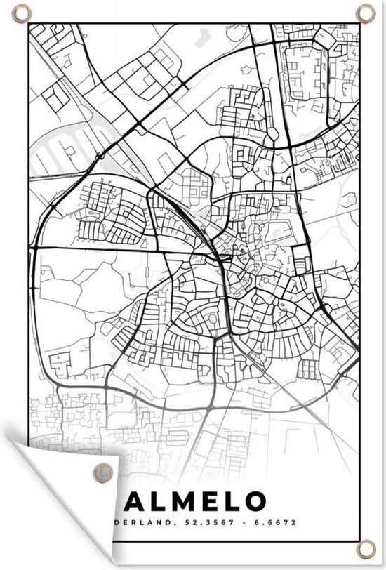 Poster de jardin Carte - Almelo - Zwart - Wit - 80x120 cm - Jardin
