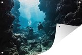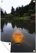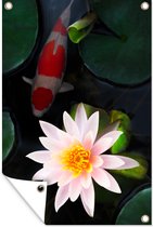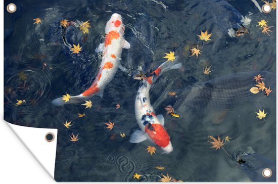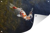 Poster de jardin Deux corsaires koï nageant entre les feuilles - 120x80 cm - Jardin