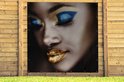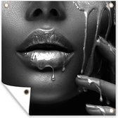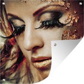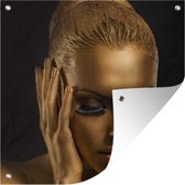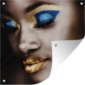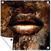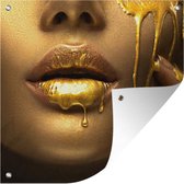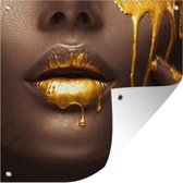 Poster de Jardin Femme - Or - Rouge à lèvres - 200x200 cm - Toile de jardin - Poster extérieur
