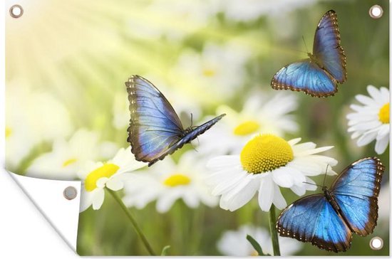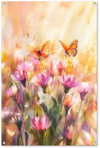 Poster de jardin Fleurs - Papillons - Été - 120x80 cm - Jardin