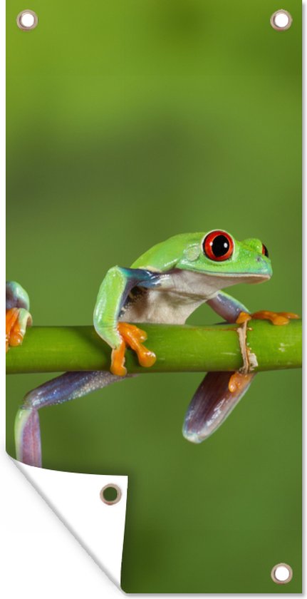 Poster de jardin Grenouilles - Branche - Vert - 40x80 cm - Décoration murale Outdoor - Poster jardin - Toile jardin - Poster clôture - Tableau jardin