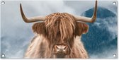 Poster de jardin Highlander écossais - Vache - Fourrure - 40x80 cm - Décoration murale Outdoor - Poster de jardin - Toile de jardin - Poster de clôture - Tableau de jardin
