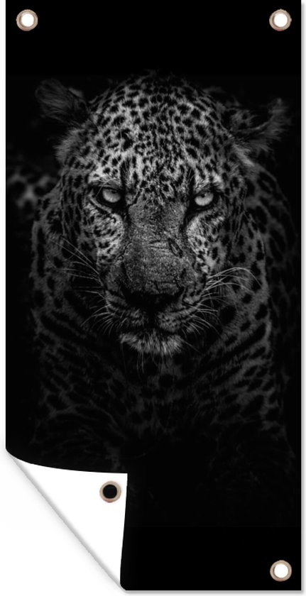 Poster de jardin Léopard - Zwart - Wit - 30x60 cm - Toile de jardin - Poster extérieur