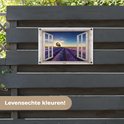 Les Posters de jardin, également appelées toiles de jardin, sont des affiches spécialement conçues pour être accrochées à l'extérieur. Cette nappe de jardin peut donc prendre une raclée. La voile Bisonyl a été utilisée pour cette affiche extérieure. Cette voile est une bâche enduite avec une belle finition. L'affiche de jardin est résistante aux UV, elle ne se décolore donc pas au soleil. Plusieurs anneaux ont été placés dans la toile pour que vous puissiez facilement l'accrocher! Jusqu'à une taille de 120x80 cm, les anneaux sont dans les coins, avec des tailles plus grandes, les anneaux viennent tous les 60 cm. Le tissu résiste aux différentes influences climatiques et est garanti 3 ans.