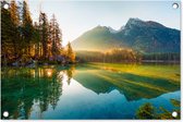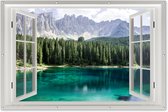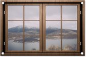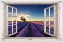Poster de jardin Look-through - Lavande - Arbre - Fenêtre - Coucher de soleil - 60x40 cm