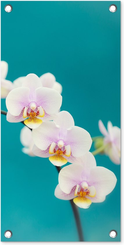 Poster de jardin Orchidée - Fleurs - Plante - Wit - Violet - 30x60 cm - Toile jardin - Poster extérieur