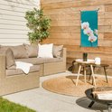 Les Posters de jardin, également appelées toiles de jardin, sont des affiches spécialement conçues pour être accrochées à l'extérieur. Cette nappe de jardin peut donc prendre une raclée. La voile Bisonyl a été utilisée pour cette affiche extérieure. Cette voile est une bâche enduite avec une belle finition. L'affiche de jardin est résistante aux UV, elle ne se décolore donc pas au soleil. Plusieurs anneaux ont été placés dans la toile pour que vous puissiez facilement l'accrocher! Jusqu'à une taille de 120x80 cm, les anneaux sont dans les coins, avec des tailles plus grandes, les anneaux viennent tous les 60 cm. Le tissu résiste aux différentes influences climatiques et est garanti 3 ans.