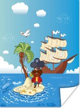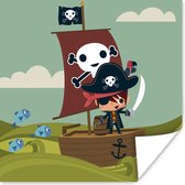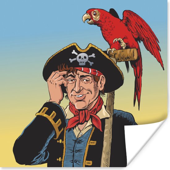 Poster Dessin d'enfant coloré d'un pirate et d'un perroquet - 30x30 cm