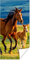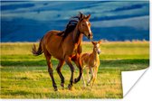 Poster enfants - Décoration murale filles - Paarden - Herbe - Animaux - Paysage - Nature - Poster cheval - 150x75 cm - Décoration chambre enfant