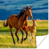 Complétez la chambre de bébé avec cette affiche PosterMonkey ! L'affiche représente une jument avec son poulain dans un paysage herbeux.